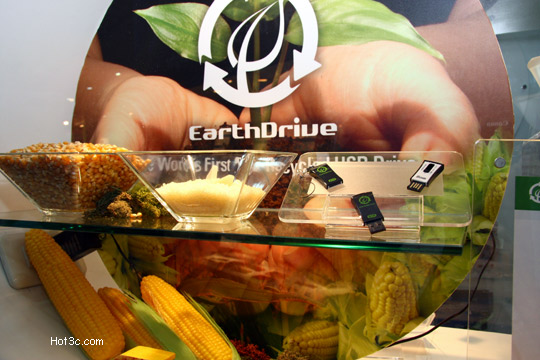 這是賣爆米花的攤位嗎? of course not! 這是 ATP 展出的環保隨身碟 EarthDrive,宣稱有 10%的材質是採用玉米製造,而且,材質還是可分解的,也就是說,萬一哪天被丟在公園草叢裡,過了幾十年便會自動分解殆盡。
