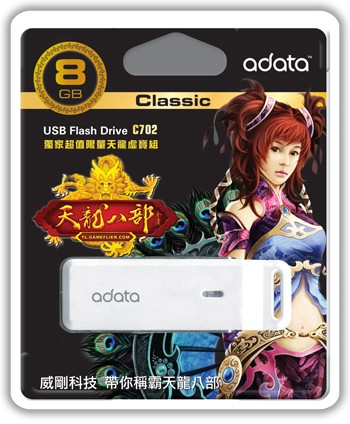 威剛科技於6/1正式發行由賀軍翔、曾愷璇代言之「天龍八部online」限量版系列:G系列DDR2 800 4GB雙通道記憶體,與限量版C702隨身碟,隨包裝獨家贈送天龍八部online限量虛寶!