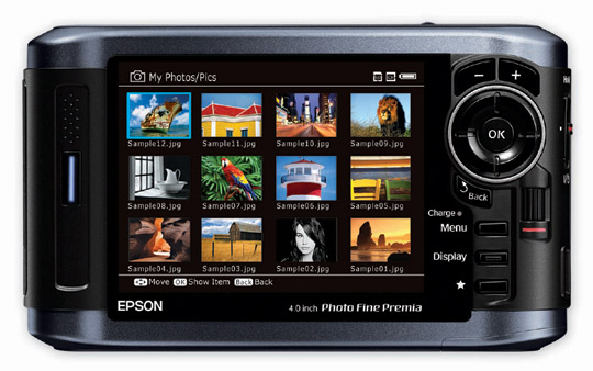 Epson 今日正式發表了最新多媒體播放器 P-6000 / P-7000,分別搭載 80GB / 160GB 2.5吋硬碟,比前代 P-3000 / P-5000 硬碟容量又提昇了一倍。不過 P-6000 / P-7000 在外型上仍然沒有太大改變,仍然使用 4吋、 640x480、1677萬色的螢幕。並支援 CF, SD 雙槽插卡。在輸出介面上,則提供 USB 2.0、TV-out 以及 USB Host 連接,都與前代機種相同,仍未支援 HDMI 端子。