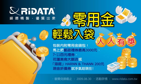 中獎百分百! RIDATA 零用金 輕鬆入袋