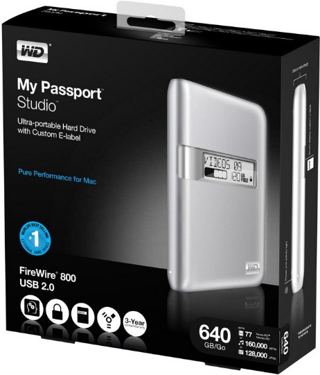 WD 所推出的 My Passport Studio 硬碟專為創意專業工作者與 Mac 玩家所設計。使用FireWire 800 介面可迅速將電腦中他們所創作的大型檔案轉存於My Passport Studio 內,攝影師等專業人士也可運用 e-label 電子標籤系統有效管理自己的作品。