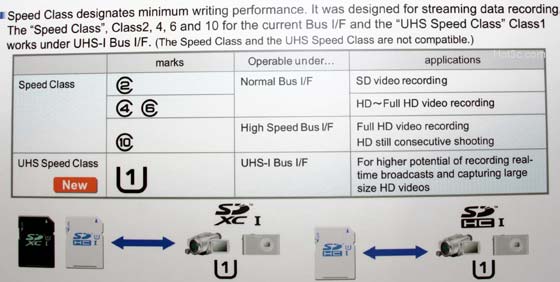 最早的 class 2/4/6 標示法,雖然可滿足消費級相機的拍照需求,但 class 6 的 6MB/sec 寫入速率老實說實在太慢了,因此後來又推出了 class 10 的 10MB/sec 新標示法,但也只是稍稍擴展 class 6 而已。隨著 1080p 錄影、藍光時代的來臨,雖然 class 4 ~ 10 還可滿足數位相機 1080p 錄影的需求,不過愈來愈多的影音周邊也將開始採用 SDHC/SDXC 記憶卡,因此 SDA 才又開始定義下一世代的新規格: UHS。未來也將會有 300MB/s 速度的 UHS-2 問世!