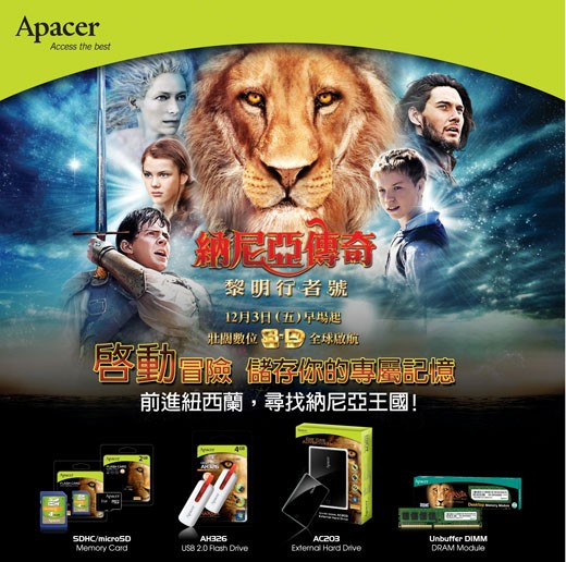 Apacer 宇瞻科技吹響《納尼亞傳奇 3》啟航號角