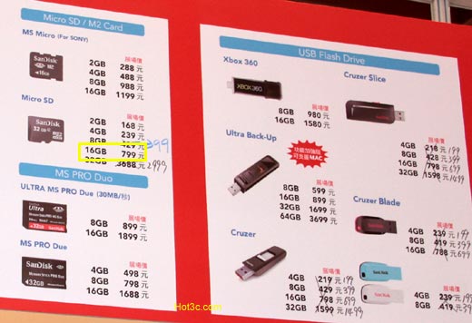 Sandisk 的 16GB CL4 microSDHC 也是以非常優惠的 $799 促銷,可惜大部分時間都缺貨中,16GB Curzer 隨身碟更只有 $699!