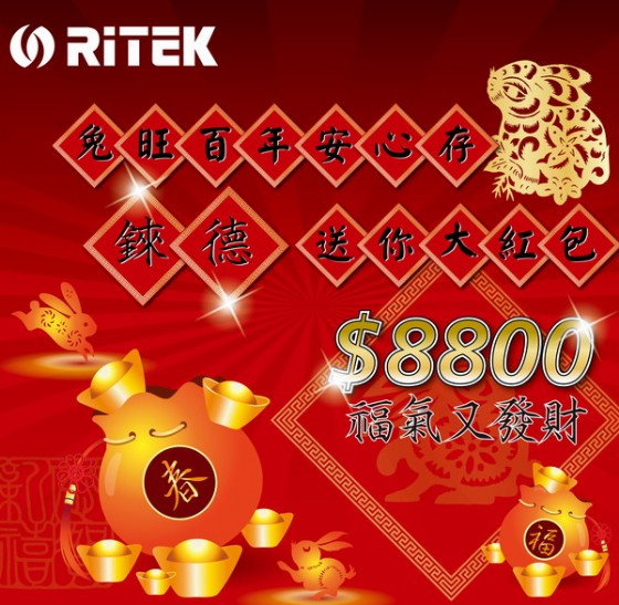 錸德推出「兔旺百年安心存 錸德送你大紅包 」