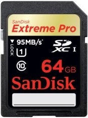64GB SanDisk Extreme Pro SDXC UHS-I記憶卡:奠基於最新的SD 3.0 UHS (Ultra High Speed)超高速規格,SanDisk開發出此款產品,為其專業級影像處理家族帶來雙倍的效能與容量,這張SD記憶卡擁有全球領先的寫入速度,是影像玩家們使用UHS對應之數位相機時的完美搭檔。