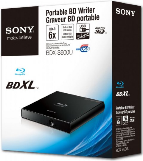 Sony即將推出世界第一台取得USB Bus-Power認證標章的藍光燒錄機【BDX-S600U】,支援BD XL超大容量藍光光碟存取達100GB,其超薄機身配備雙USB接頭,省去電源線直接與電腦連結,直接連接電腦或筆電即可進行個人資料、影片、音樂的分享與備份,且機身下設有貼心的USB收納槽,無論是商務辦公或個人使用,都相當方便使用與收納整理。