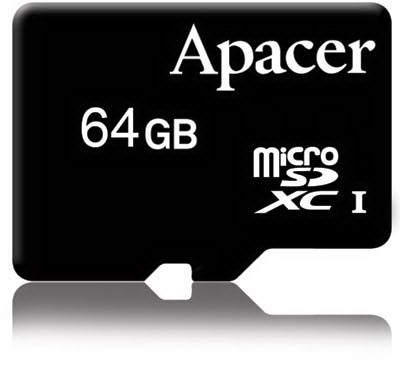 Apacer Ultra High Speed microSDXC 64GB記憶卡,可儲存約23個小時的HD影片、一部完整未壓縮的藍光高畫質影片,或是超過16000張一千二百萬畫素的靜態照片,當行動裝置的規格一日千里,高畫質影音分享蔚為主流,Apacer Ultra High Speed microSD 記憶卡將是使用者的最佳選擇!
