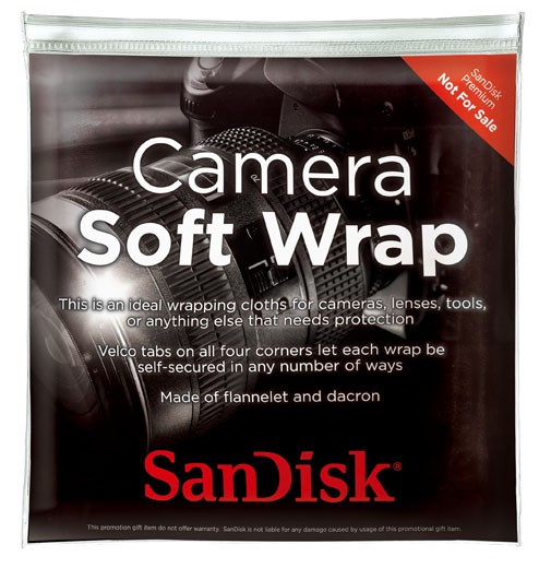 這款相機包巾能給相機更多的保護,讓攝影愛好者能安心的帶著寶貝相機在秋高氣爽的季節出遊,騎車環島,或是去登山賞楓。SanDisk獨家相機包巾使用方式相當簡單方便,只要折起四個角落將相機包好,再以四邊的魔鬼氈固定,即可丟入包包中隨身帶著走!