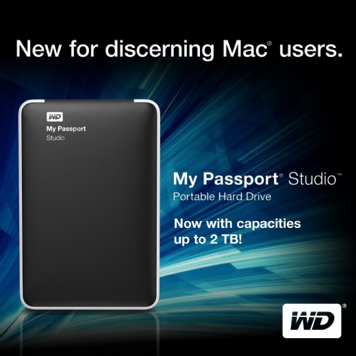WD 為Mac使用者推出首款 2TB容量的My Passport Studio行動外接硬碟。此款硬碟為儲存容量立下全新標竿,與Apple Time Machine相容,能快捷簡易地自動備份Mac內的資料,讓使用者只需利用單顆硬碟就能保護與傳輸所有數位內容,不因使用地域而受限。新款My Passport Studio行動外接硬碟維持外型典雅的全金屬外殼,最適合搭配MacBook Pro 或MacBook Air產品,不僅符合Mac使用者對美感的期盼,更提供高達 2 TB的極大儲存容量,足夠儲存約40萬張照片、240小時的影片、或是50萬首歌曲 。