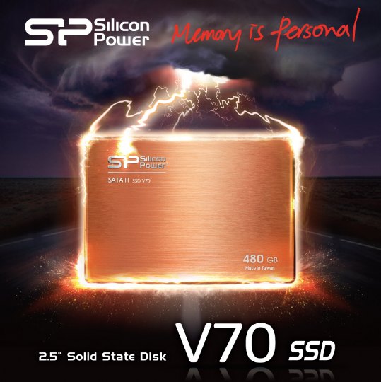 SP廣穎電通今日推出新一代超高規格SATA III 固態硬碟 Velox V70,內部使用同步顆粒,不僅延長固態硬碟使用壽命,更大幅度提升速度效能,4K隨機寫入可高達86000 IOPS以上的讀取速度,可稱為專業級玩家飆速的必備首選。鋁合金外殼,搭配上閃雷金以及髮絲紋路的相互輝映,SP廣穎電通V70即將刮起一陣『金色飆速旋風』。