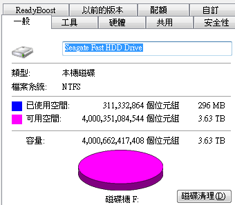 Windows Format 後的總容量為 4,000,662,417,408,符合 4TB 定義,不過在檔案總管中看到的顯示則是 3.63TB。