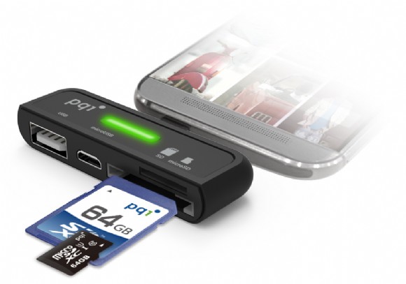 PQI (勁永國際)研發出的Connect 209 四合一OTG多功能讀卡機,內建microSD/ microSDXC、SD/ SDXC 、microUSB和USB 共4個插槽,且相容各Android系統廠牌支援OTG的智慧型手機和平板,讓數位相機所使用的microSD與 SD卡內照片或其他影音檔案皆可透過Connect 209傳輸至手機,即時瀏覽並同步上傳至網路。