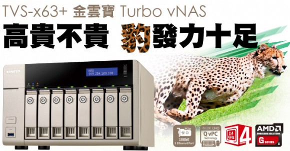 威聯通科技 (QNAP) 與美商超微半導體 AMD 攜手合作,推出新款高效能、支援 10GbE 高速網路傳輸的 TVS-x63+ Turbo vNAS 系列,含支援 8 顆硬碟的頂級機種 TVS-863+ 以及支援 4、6、8 顆硬碟的 TVS-x63 機種。全系列搭載 AMD Embedded G-Series 四核心 2.4GHz 處理器、記憶體最高可擴充至 16GB、具備高效硬體加密與 SSD 快取技術,並內建 AMD Radeon graphics 圖像顯示核心,提供高性價比 10GbE 網路儲存解決方案,可安全存放重要資料,且極適合需密集存取資料與高畫質多媒體檔案處理等應用。