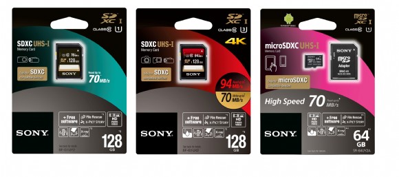 Sony在台推出全新三款高速SD及Micro SD存取記憶卡,針對目前消費者使用數位相機及行動裝置大量的拍照需求,提供至少70MB/s以上的讀取速度;兩款SD 存取記憶卡【SF-UY2】、【SF-UX2/T2】 皆提供高達128G的大容量選擇,其中具備最高可達94MB/s讀取速度的【SF-UX2/T2】系列,對應UHS-I Class 3 (U3)的儲存速度規格,支援單眼相機高速連拍以及4K影像拍攝,可存取大量資料;而同樣可支援拍攝Full HD影片的【SR-UY2A】系列,針對廣大智慧型手機使用者擴充容量或是追求高速效能的需求的消費者 。