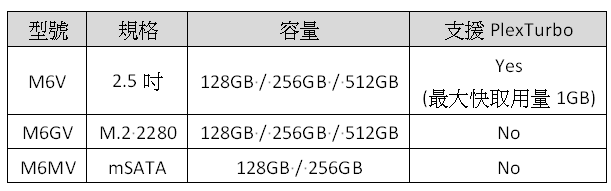 PLEXTOR新推出V系列SSD,適合固態硬碟入門使用者,V系列有2.5吋、M.2 2280,以及mSATA三種規格,其型號分別是M6V、M6GV,以及M6MV,不論是桌機還是筆電都可以採用V系列SSD升級。其中M6V並可搭配PLEXTOR開發的PlexTurbo智慧快取軟體,來為SSD讀寫加速以及延長壽命。V系列SSD於2015年8月上市。