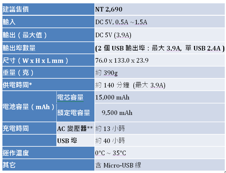 全新兩款Sony【CP-R10】及【CP-S15】行動電源,皆採用Sony獨家高科技鋰離子聚合物技術,可重複充電達1,000次仍保有電池充電品質及穩定性,延長電池最大化壽命週期;可透過USB連接埠或AC變壓器充電的設計,再加上可同時充、放電的設計,使用上更具彈性與便利。兩款行動電源接搭載四項安全設定:自動避免過度充電、短路保護、偵測異常溫度及安全計時器有效防止起火自燃,安全支援各項裝置供給不斷電。