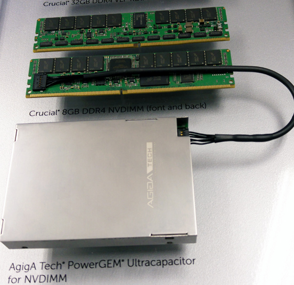 另外我們也看到了 Micron 在企業用戶端的新品,其中 NVDIMM 產品結合了 DRAM 以及 NAND Flash 的優勢,可在主機斷電時將 DRAM 的資料立即儲存寫入 NAND Flash,一旦復電重新工作時便可繼續斷電前的無縫作業。這款搭載專屬電源的產品在六月下旬上市也即將上市。