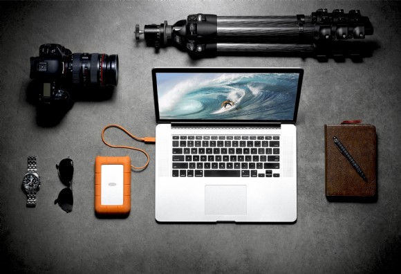 LaCie Rugged Thunderbolt行動硬碟同樣支援傳輸線供電 (bus-powered),搭載Thunderbolt和USB3.0雙介面,是Mac和PC使用者的最佳配件。