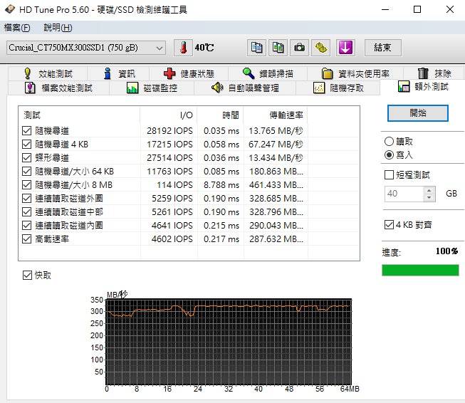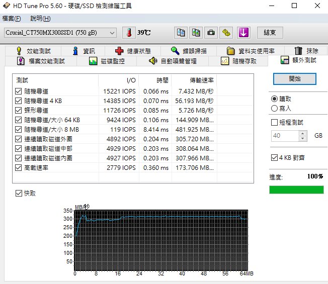 以下則使用 HD Tune Pro 5.60 進行實測,用戶可自行參考比較各項效能表現。