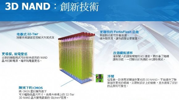 3D NAND 技術是最近促長容量 SSD 最大的功臣,同時也讓 TLC 能順利取代 MLC 成為 SSD 的新主流。Micron 的 3D NAND 最高可堆疊 32層晶片,成為市場最高 Gb/mm2 的產品。但 3D NAND 不僅僅是容量上的提升,同時也改良了 SSD許多層面: