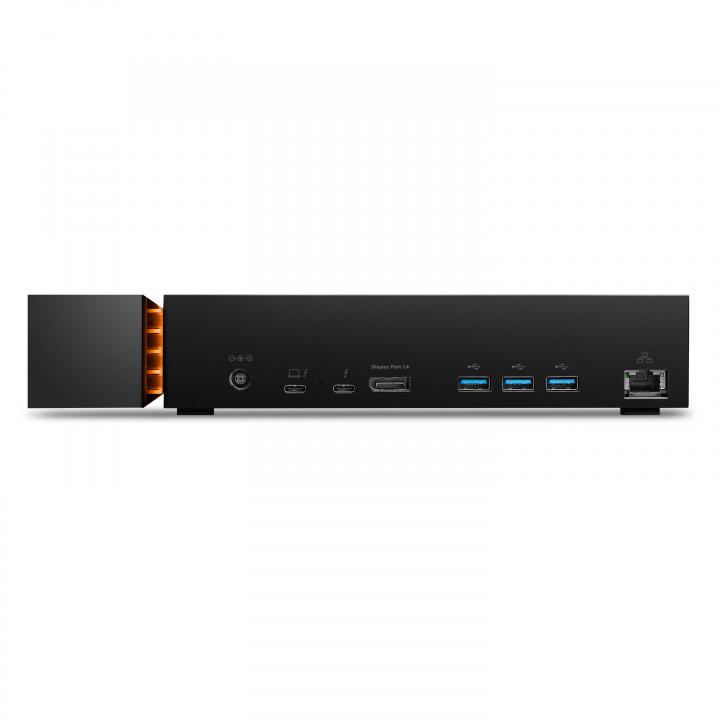 除了用於連接筆電的Thunderbolt 3連接埠外,FireCuda Gaming Dock 同時配有連接配件裝置的Thunderbolt 3 連接埠、DisplayPort 1.4、RJ45乙太網路埠、3.5mm 音訊輸入/麥克風埠、3.5mm 音訊輸出埠、4個 USB 3.1 Gen2 連接埠及1個 USB 3.1 Gen2 充電埠。其外觀以極簡的工業風設計搭配可自行設定的 RGB LED 燈光,遊戲玩家能夠使用隨附的希捷 Toolkit 軟體,輕鬆調整各種色彩和燈光模式,將遊戲體驗推向顛峰。
