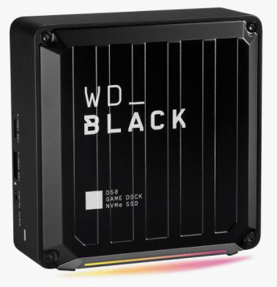 WD_BLACK D50 Game Dock NVMe SSD:這款輕巧、高效能的Game Dock SSD具有散熱片設計,搭配具備Thunderbolt 3介面的筆記型電腦,就能完美變身為提供沉浸式體驗的完全整合遊戲站。對於希望精簡配備的遊戲玩家而言,WD_BLACK D50 Game Dock只需透過一條帶有多個連接埠且連接週邊裝置的 Thunderbolt 3 纜線,就能透過NVMe技術帶來更快速度,並獲得更大的遊戲儲存空間。此外,WD_BLACK D50 Game Dock NVMe SSD可透過WD_BLACK Dashboard軟體(僅限 Windows R)控制可自訂的 RGB 照明。