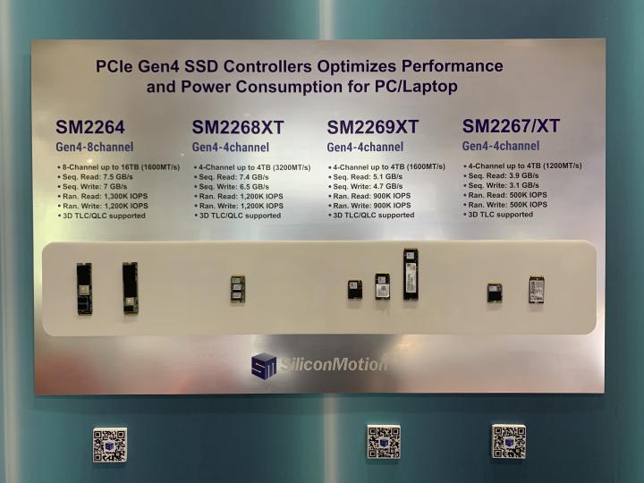 - SM2269XT:適用於主流筆記型電腦的PCIe Gen4 x 4、4 通道SSD控制晶片,每個通道最高速度可達1600MT/s