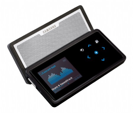 台灣三星電子(Samsung) 搶先洞悉了消費者的市場需求,MP3不只獨享,更可以選擇共享!Samsung今日(17日)發表全球首台內建滑蓋式揚聲器MP3革命性機種K5,與超輕薄、整合影片欣賞等多媒體功能的MP3進階版T9同步上市。Samsung在加入MP3市場後,表現成績亮麗,幾乎超越100%成長率,此次發表兩款突破性功能的MP3,預計將可攻下10%市占率。