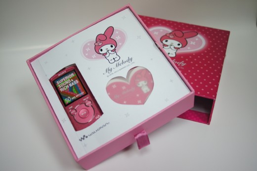 Sony全新Walkman®美樂蒂情人節精裝限量組,包含雷雕上美樂蒂的粉紅色款Walkman®【NWZ-E463】數位隨身聽、同系列美樂蒂桌布、麂皮收納袋、珍藏編號證書、精美禮盒與提袋包裝以及專屬耳機,每套售價NT$3,490,將於1月19日起開放預購,2月10日正式上市。