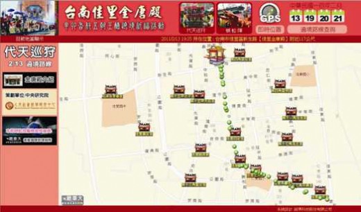 GPS不只可以用於導航、管理企業車隊,現在連神明遶境都要跟上科技的腳步,臺南佳里的「蕭壟香」是三年一次的地方宗教盛事,三級古蹟金唐殿的遶境祈福活動及蜈蚣陣藝閣民俗活動,總吸引來自全省各地的信徒前往,在今年的辛卯香科五朝王醮大典(2/19~2/21)中,108位孩童將組成打破金氏世界紀錄的最長蜈蚣陣,為服務信徒與前來參與活動的觀光客,特別由銳俤科技協助金唐殿提供代天巡狩神轎與蜈蚣陣的即時位置資訊。