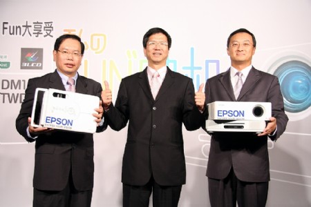 陳維鈞強調,藉由去年發表All-In-One產品的成功經驗,今年Epson再度推出新一代“私のFUN映机-EMP-TWD10與EMP-DM1”,除了沿襲既有的簡單易用、優質畫面與簡潔設計等優點之外,更分別加入前後180度旋轉、天花板投影與提把裝置等人性化設計。相信在今日新產品推出後,Epson將再度在家用投影機領域投下震撼彈,創造出更多嶄新家用投影應用,成功挑戰每月700台目標,持續稱霸投影機巿場。
