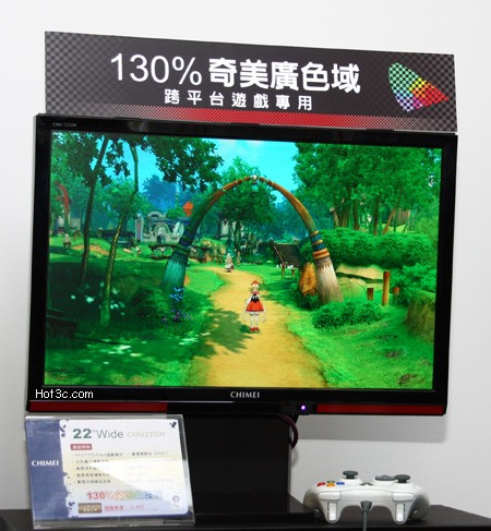 遊戲玩家注意了!CHIMEI於春電展首日,發表全新跨平台遊戲專用機種22吋廣色域寬螢幕(CMV22GH)。獨家130%廣色域顯色技術,搭配多媒體應用、多功化高級配備,無論是PC/Online/XBOX360 elite/PS3,玩家都能輕鬆跨平台玩遊戲,勢必成為次世代遊戲玩家的顯示器首選。