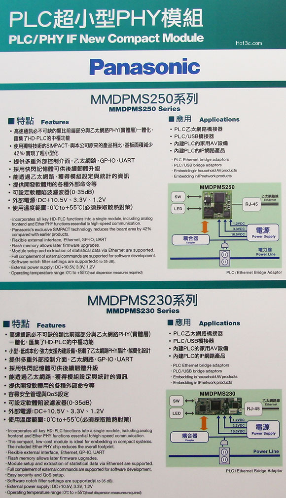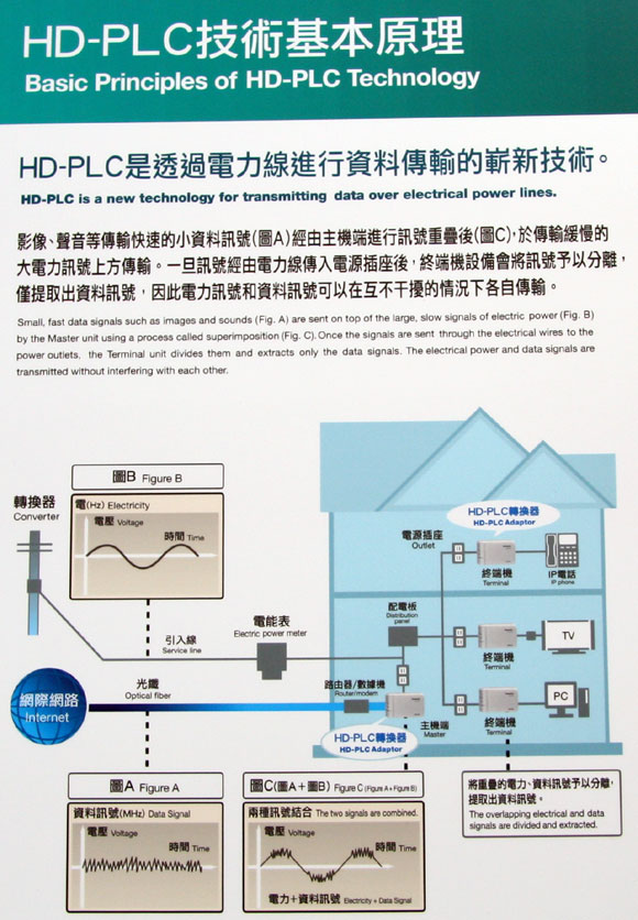 Panasonic 在 Computex 2008 上大力宣傳他們的 HD-PLC 架構,這是企圖將家裡的電力線充當成網路線的快速解決方案,只需一個轉換器在牆壁的電力插座一插,馬上就可充當網路線使用。而頻寬可達 210Mbps,用來支援 10/100M Ethernet 綽綽有餘。