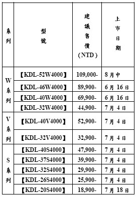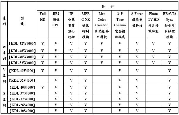 Sony BRAVIA 2008 新品規格售價
