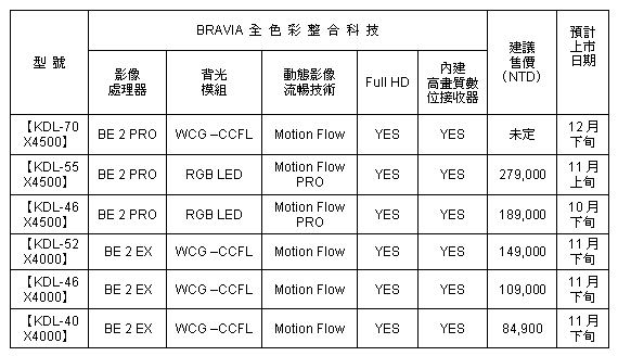 Sony全新上市完美色彩的BRAVIA X系列,其獨家色彩技術包含了獨步全球的RGB動態LED背光技術,將大幅提升色彩廣度至150%,搭配BRAVIA ENGINE 2 PRO(BE2 PRO)影像處理器,畫質表現超越Full HD,以及Sony獨家Motion Flow PRO清晰動態影像流暢技術,改寫大尺寸液晶電視及最高畫質與色彩的定義。而在家用視聽產品串連功能則包含了BRAVIA Sync影音同步操控功能,讓視聽娛樂享受更豐富多元,完全體現Sony在液晶電視市場領導地位。