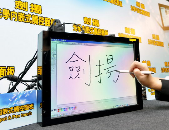 目前觸控面板多由國際大廠主佔市場,劍揚董事長兼執行長黃惠良表示:「身為台灣科技廠商,劍揚推出的光學內嵌式機種,以更簡易的設計結構達到更有效的