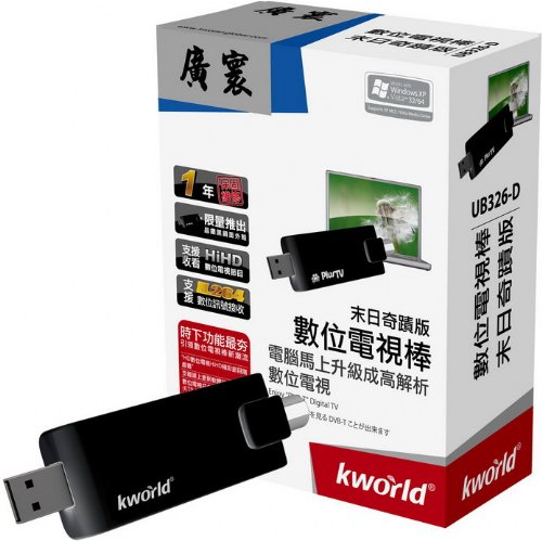 廣寰科技(KWorld)宣佈推出一款時尚優雅的數位電視棒「末日奇蹟版 (UB326-D)」。纖細的外型設計,搭配鑽黑鏡面拋光處理,展現不凡氣勢。支援H.264數位電視訊號的解碼程式,輕鬆收看HDTV高畫質數位電視,絕不錯過任何一場精彩節目播出或錄製。另可外接主動式天線,強化數位電視訊號,輕鬆收看免費高畫質數位電視節目。