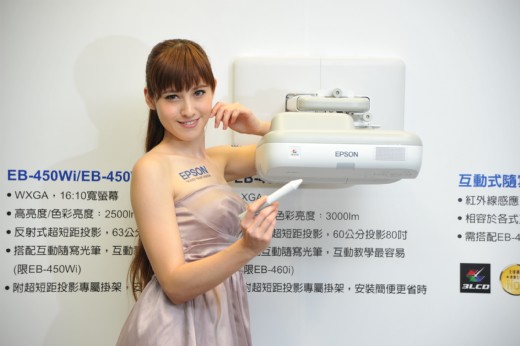 Epson推出業界首創反射式超短距互動投影機,以點石成金的反射式互動投影技術輕鬆轉化牆面為電子白板,更以76公分超短距離實現102吋大畫面,預計將在投影機市場投下震撼彈!穩居投影機市場龍頭地位的Epson於2009年以28%的平均市佔率奪下冠軍寶座,2010年則將以新款投影機在市場引領風潮,新上市的Epson EB-450Wi、EB-450W、EB-460i、EB-460為短距投影再立新標竿,其中EB-450Wi、EB-460i搭配驚豔市場的互動式隨寫光筆,提供反射式互動投影的創意應用,讓任何平滑面都可以變身電子白板,為商用與教育市場創造最具經濟效益的互動環境,也為Epson投影機三冠王的地位再創巔峰。