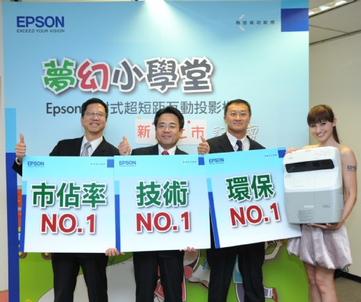 台灣愛普生影像科技事業群總經理陳維鈞表示:「Epson多年來以精益求精的投影技術提供超越市場期望的方案,贏得消費者的肯定與支持。根據IDC及PMA的統計資料顯示**,Epson 2009年市佔率穩居龍頭寶座,投影機出貨量達34,421台,較2008年出貨量有高達30%以上、8,000餘台的成長。Epson連續六年蟬聯台灣投影機市場冠軍,穩居技術第一、市佔率第一、環保第一的三冠王寶座,此次新上市的四款投影機,更是全球唯一整合反射式超短距投影技術與互動隨寫光筆設計的解決方案,將實現更生動活潑的互動教育環境,也為商務簡報提供更優質的互動方案。此次新上市反射式超短距互動投影機不僅揭示Epson的技術優勢,更預計帶動市場議題與銷售熱潮,搶佔超越35%的市場佔有率。」