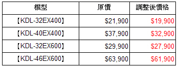 Sony的BRAVIA液晶電視2010新機持續熱賣,拿下5月份GFK調查液晶市場第一名、5月份GFK調查LED背光產品類第一名、以及讀者文摘理想品牌第一名等三冠王!為感謝消費者對於BRAVIA電視的支持與愛護,Sony於即日起針對部份機種推出夏日感恩回饋價。機型原價調整後價格:
