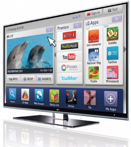今年LG在CES展覽會場上陣仗最大的智慧型產品之一就是LG智慧型電視(Smart TV),此系列電視結合了最先進的電視科技與網際網路連線能力,操作上非常容易。會場展示的Home Dashboard家庭儀表板與Magic Motion Remote Control動感遙控器,也充分展現了LG智慧型電視在點選操控方面的聰明能力,讓智慧型電視的操作與內容存取直覺而容易。LG的Smart Share除了現有的USB和DLNA功能之外,又增加了Media Link媒體連線功能,讓LG智慧型電視使用者自由存取個人電腦上的內容,將這些內容直接傳送到電視,同時還可提供觀賞內容的資訊。