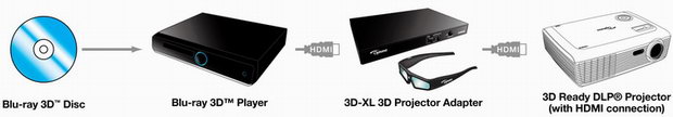Optoma 3D-XL提供兩組HDMI 1.4a訊號輸入接頭,可連結3D藍光播放器與3D PS3遊戲機,接收Side-by-Side、Frame-Packing及Over-Under等等多元的3D格式訊號。2D影像格式之最大輸出解析度為1080p,3D格式最大輸出解析度則為720p,3D-XL精彩呈現高畫質藍光3D影像,讓您在家輕鬆享受劇院級立體3D大畫面,不論看3D影片或玩3D遊戲,更有身歷其境之震撼效果。