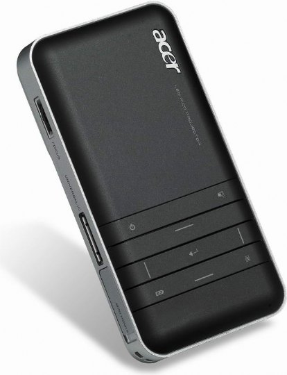 Acer掌上型LED投影機C20,同時榮獲世界級的2011 iF工業設計及紅點設計大獎,造型簡單如手機般,重約166g,可放入口袋攜帶;內建電池,投影時間達2小時;內建Micro SD、Micro USB及mini HDMI連接埠,不需透過電腦即可讀取資料;還配備50MB記憶體,並可擴充容量;透過Acer ColorSafe功能還能發揮DLP技術的優勢,保持圖像完整不失真;而Acer的節能模式更具環保,讓燈泡使用時間達2萬小時,售價12500元。