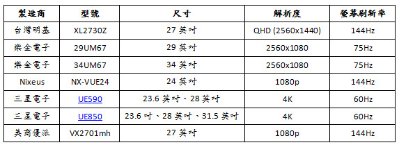 明基、樂金電子、Nixeus及三星電子等廠商的新款顯示器,現正於AMD位於美國拉斯維加斯CES大展威尼斯人酒店的CES Tech West展區San Polo廳的3402與3404號攤位展出。這些新款顯示器預計從本月起陸續問市,2015年初還會有更多機型上市。