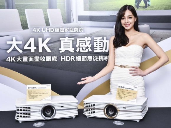 為了體現『大4K、真感動』的訴求,Optoma領先業界以親民的價格推出4K UHD旗艦家庭劇院投影機 – UHD65、UHD60,優於Full HD四倍的解析度優勢、完整830萬的有效像素顯示,與銳利畫質與色彩,結合HDR10高動態範圍影像,及彈性的安裝設置,實現在家也能擁有逾百大尺寸、4K高畫質的影音享受,『打造4K家庭劇院』再也不是電影愛好者以及影音玩家們只能遙望的奢侈夢想!」